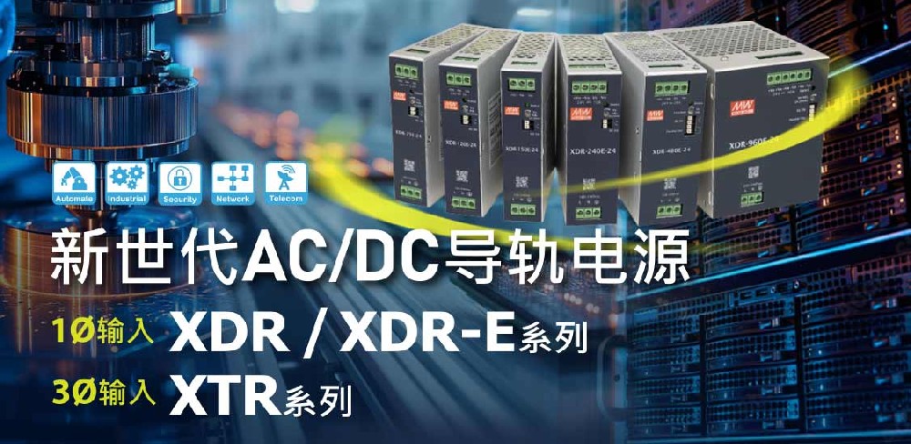 • 明緯重磅推出全新世代AC-DC導軌電源XDR/XDR-E/XTR三大系列,依1?及3? 不同的系統及市場應用需求,1?輸入規劃「高階旗艦款XDR 系列」和「性價兼備款XDR-E系列」兩個檔次;3? 輸入XTR系列一個檔次,提供更超值選擇,可充分滿足工業自動化、網路交換機、或半導體制程設備等行業需求。